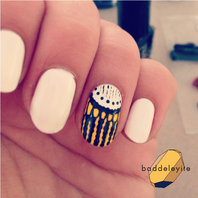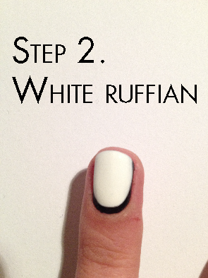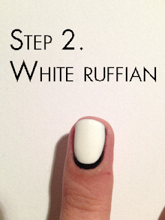 Having troubles with the ruffian? There's load of good tutorials on youtube covering that, so I won't go into detail. The gist of it is to paint your nails as usual, but leaving a small gap all around. Practise makes perfect, and this design is very forgiving.